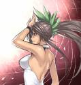 The raven is waiting for you at the gates of the dojo, dressed in a breath-taking kimono that somehow emphasizes her womanly curves despite covering so much skin. You follow behind her, your eyes drawn to her swaying hips and the generous swell of her chest, as she guides you to her room. It is darkened by lowered blinds and only dimly lit by a few flickering candles. On the low table is an open bottle of wine and a pair of high-stemmed glasses. Instead of the futon you expect to find rolled out over the floor, there is a lonely chair in the corner of the room instead.