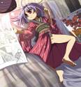 “Whatever,” Seija answers, and after floating a few meters into the air she pinches the back of Shimi’s kimono and lifts the princess into her open palm. “Don’t take too long, Odou-san. If we wait too long I’m gonna kick you in the balls.”