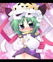 Komachi nods her head quickly a few times to clear it, and slides off the table with a yawn and a stretch. You can't help but stare at her bust - it really is impressive, especially with her top still hanging off, leaving her breasts covered by nothing but bindings. She tear your gaze away just as she reaches into her clothes and pulls out Siki's skirt, wrinkled and slightly torn.