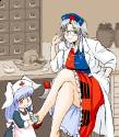 "All right then, I'll walk you there. I'll be with you when you talk to your father as well if you want." Keine comforts Marisa as she puts a hand on her other shoulder. Keine then turns to Mokou and Mystia and pulls out a small purse, to which Mokou puts a hand up and shakes her head.