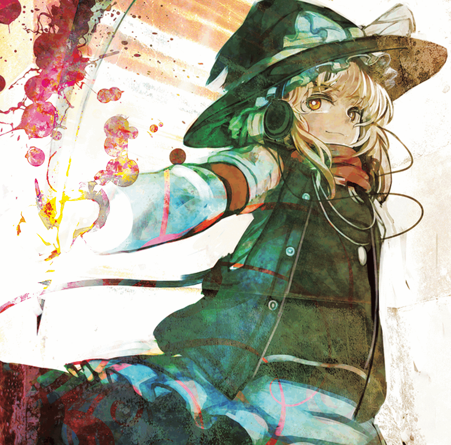 Sighing, the girl pulls the buzzing object out, revealing a rather odd, bright cell phone. Flipping it open, she sighed as she saw who it was that was calling. "Dammit…" After staring at it for a few moments, the girl yanks off the headphones from her head and brushes her blonde hair to the side before raising the phone to her ear. "Oi. Reimu. How's life treating you?"
