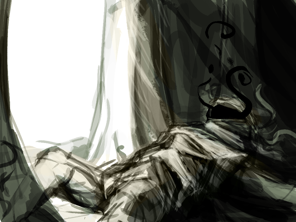 Your body takes the news not so delicately. You skirt backwards as if the earth beneath your feet had turned into cinders. Fortunately, you stop yourself before you draw your knife or arrow. You have that much self-control, at least.