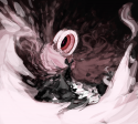 The scarlet-window is made significantly less scarlet as the writhing darkness of Nue’s body dives into the foreground. “Schütz!” Its eye gleams with gluttonous, predatory excitement. It’s missing an arm now too, but it compensates by waving its remaining appendage around like a ragdoll.