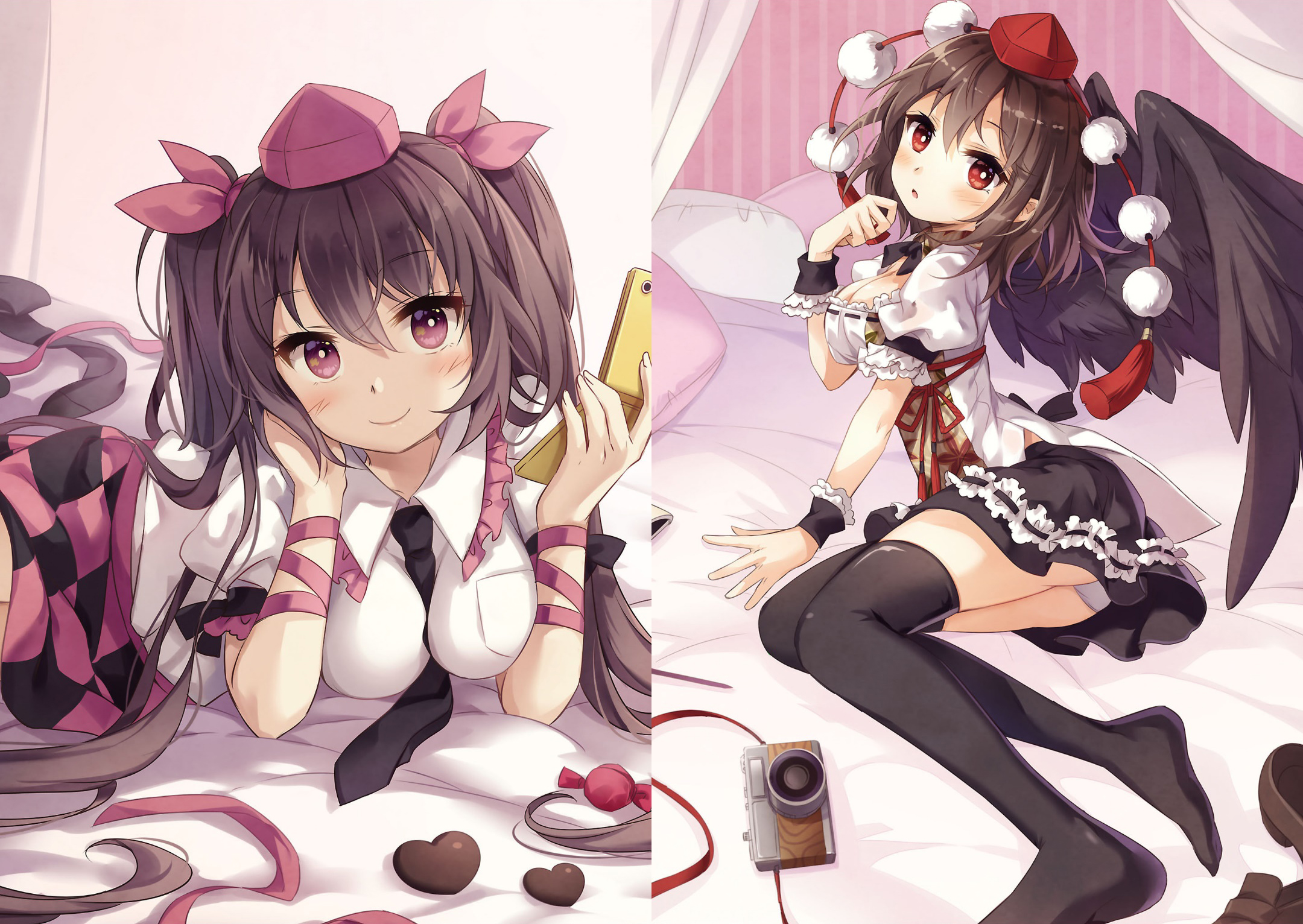 In contrast with that she's the most human-like Tengu we know. She even goes to the human village in her newsboy outfit, give positive review to things like KKR48's "Ningyo-yaki In Love," and printed pinup photos of herself in AFiEU. It's pretty cute, although she's not a very stereotypical youkai-like-youkai like Seija, she has similar opinions chaffing against the status quo of peace while being borderline humano-phillic at times with how she imitates outside world humans.