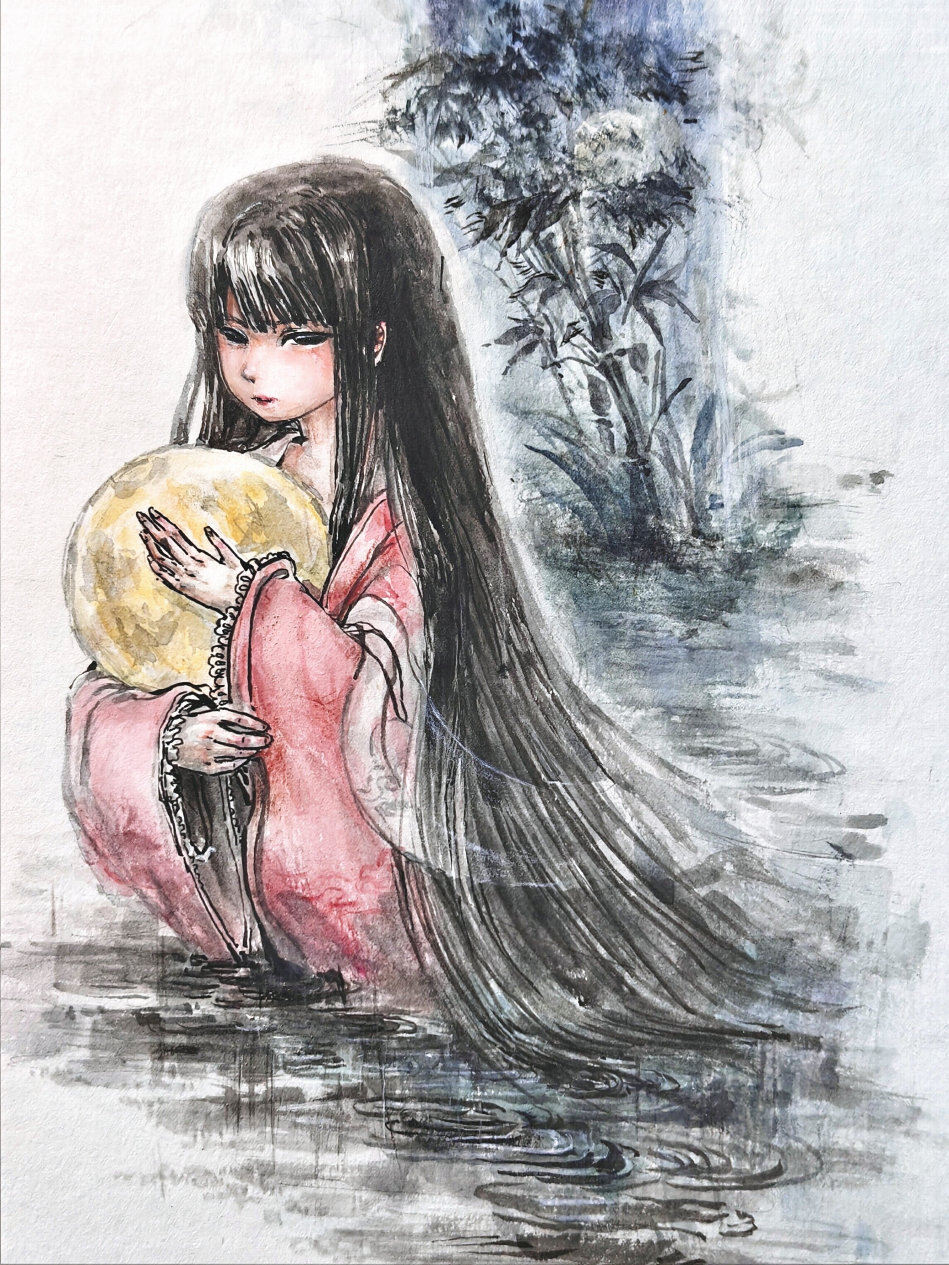 I had several potential ideas for the exhibition and I’m not quite sure what it was about this one that made me go with this. Maybe it was because I hadn’t done anything with an Eientei character for the longest time or maybe there was something about sericulture and the delicate nature of those larvae that seemed to invoke the moon. Regardless, there was something to the notion of change and its inevitability as well as the ways that connections form in spite of things that appealed to me. Even impulsive, selfish acts, can lead to a supportive and worthwhile community.