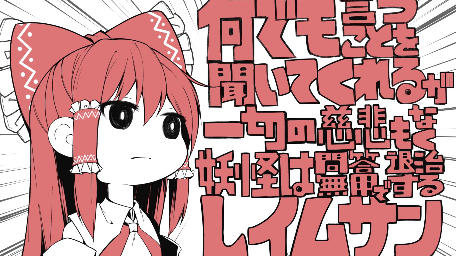 translated: Reimu-san, who will listen to anything she's told, but will also mercilessly exterminate any youkai without questions.