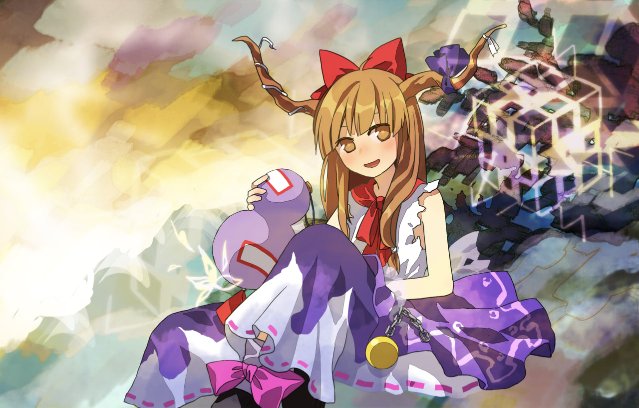 Anyways, I really like the idea of Suika being a former human, mostly because of how it changes her relationship with Kasen. And honestly whether Suika is the child of a human woman and an Oni, or the bastard daughter of Yamato no Orochi by the daughter of Lord Sugawa, I don't think the big picture of her origins change that much. She was born with inhuman traits, unwanted, and ostracized from humanity for her differences, eventually choosing to become an Oni.