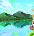 The red all faded, and Princess Kaguya began to fall, plummeting finally down. She landed in a heap of cloth, crags, and water.