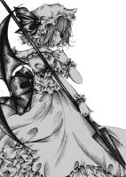 >>The monster isn't dead yet, it's bleeding from the gaping wound in its chest and from a ruined eye-socket, one arm still hanging useless. Its seared flesh isn't healing as it dodges Remilia's spear-thrusts, crushing the flower-beds underfoot. Reimu hurls a pair of yin-yang balls towards it, but it twists itself between them.