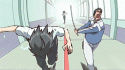 /Slide, knock her hand off, sweep miko's legs, catch her./