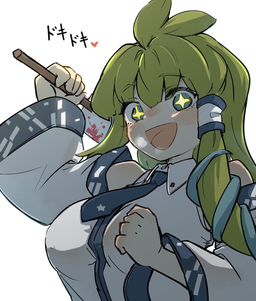 “Ah, that would be me, but I guess your company didn’t tell you,” the girl’s bushy green hair whips in activity as she shakes her head. It reminds me of Dasshinki. Bush like.
