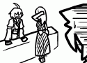 "I'm going to regret this, aren't I?" I laugh. He doesn't respond. "...Right, so, is she always like this?"