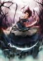 You carry on with Reisen down to the surface level of Gensokyo. The part of the forest you're sent to with her is vastly different. The geography is quite rugged, and the foliage is much thicker. You must be much deeper into the Magic Forest then your previous jobs have sent you. Shortly after beaming down, you look up at the sky. A dark, thick overcast hangs overhead. The color of water vaguely visible within the folds of the clouds covering the sky.