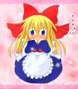 Suddenly, I felt something child-sized slam right into my stomach. I writhed in pain, cursing silently at Gensokyo for the lack of traffic lights. Then, I opened my eyes to see a short girl in a pink frilly dress straddling my waist.
