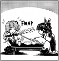 Now, I whipped my gohei out. “D-don’t-one more joke and I’m throwing you into the fires!”